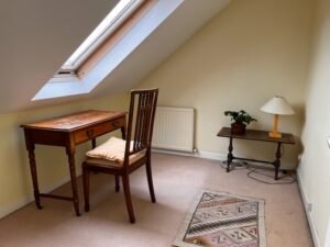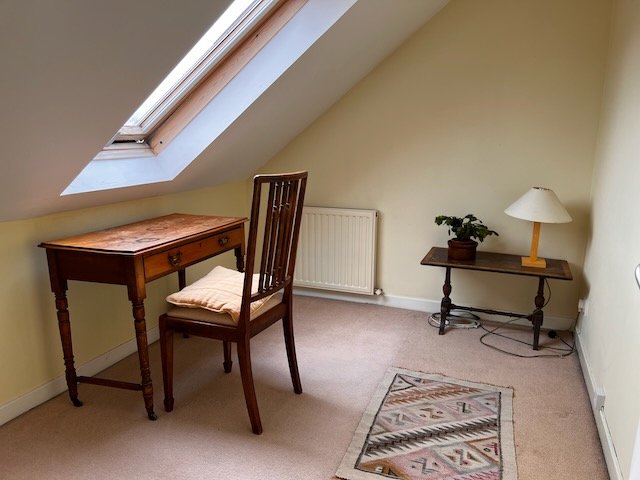 The available accommodation is the whole of the second floor of the house, including a double bedroom with views of the nearby hills, a private ensuite bathroom, a study room and a deep storage cupboard. The shared areas include a homely and tidy shared lounge on the first floor, a shared kitchen on the ground floor and a garden with a shed that could be used for bicycle storage. Facilities include broadband, tv, a washing machine and free on-street parking. There is a fortnightly gardener and a weekly cleaner who help keep the public areas in tidy order.