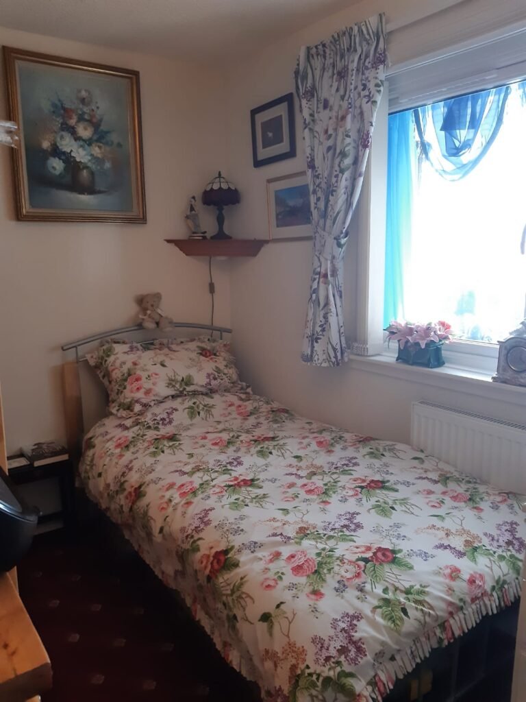 This cosy one-story house has a private single-bed bedroom. The shared areas include a lounge, dining area, kitchen, bathroom, conservatory, as well as beautiful back and front gardens. Facilities include wifi, a television, a washing machine, and free nearby parking. The property is located on a quiet residential street in the lovely small village of Lhanbryde, a 12-minute drive to the centre of Elgin.